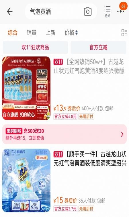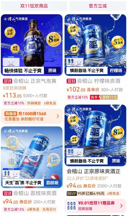 不过,目前来看,黄酒的年轻化产品整体上仍未能形成市场爆款,相比白酒、啤酒、红酒等品类,黄酒年轻市场的培育任重道远。在天猫会稽山旗舰店中,会稽山气泡黄酒付款人数从几百人到几千人不等;古越龙山旗舰店中,状元红气泡黄酒付款人数400+人。