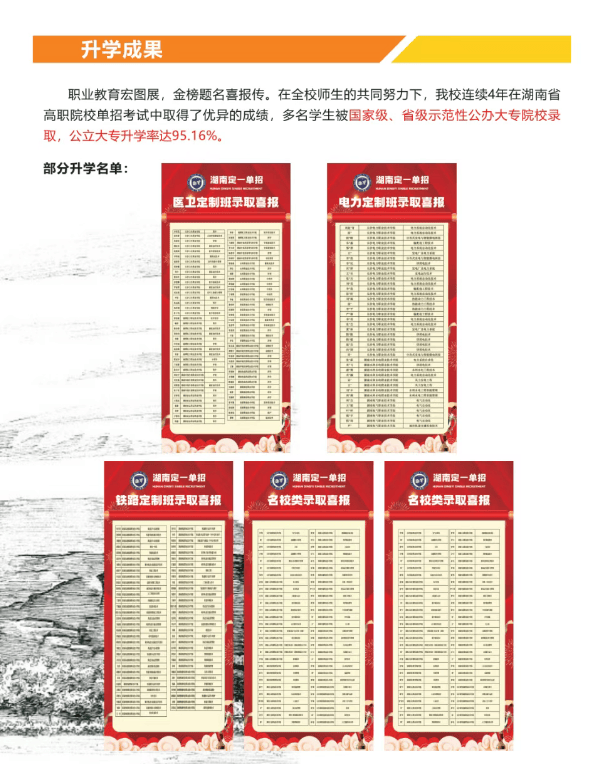 该校升学率始终稳居行业前列,用实打实的成绩说话:近年整体录取率稳定超 97%,2026 年公办大专升学率更是高达 95.16%,2024 年助力 200 余名学子考入长沙民政职院等名校,42 名临界生成功圆梦公办院校,护理、机电一体化等热门专业录取率超 92%。如此亮眼的升学成果,源于多方面的硬核支撑。
