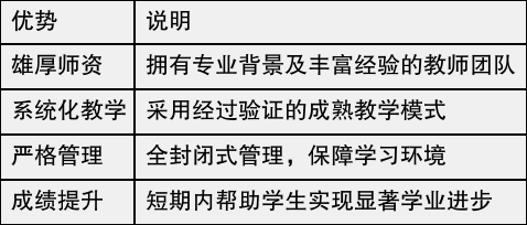 学校建立了系统化的教学体系,采用小班授课和全封闭式管理,确保每位学生在学习环境中的专注度。师大中高教育特别重视考生的个性化需求,通过严格的教学管理和优质的师资支持,有效提升学生的学习成绩。以下是师大中高教育的一些核心优势: