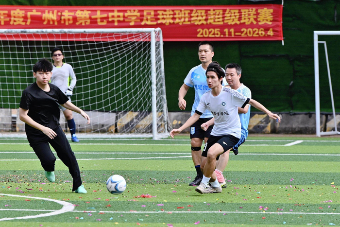 启动仪式上,广东省教育厅发展规划处副处长魏天翔宣布2025至2026年度广州市第七中学实验学校足球班级超级联赛启动,与会嘉宾为赛事开球,七中实验班超联赛在热烈、祥和的气氛中拉开序幕。广东省直单位足球队长联队、广州七中校友逸扉队、七中实验2021届校友队与七中实验女子足球队进行友谊赛,为赛事启动添上浓墨重彩的一笔。