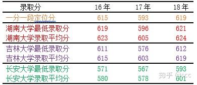 从图表中可以很明显的看出:①以自己的成绩一定能被长安大学录取,且每年的定位分比长安大学录取平均分高10~35分,肯定能上长安大学的最好的专业。②相对于吉林大学来说,定位分刚刚超过吉林大学的最低录取分数,和平均录取分数相差无几,此种情况说明有很大可能能够录取到该学校,但是学不到较好的专业,只能学到中等偏下的专业。③相对于湖南大学来说,最低录取分刚刚超过一分一段定位分,此种情况说明,有较小的可能性被录取到该学校,即使被录取到该学校后,也只能学习该学校的最差的几个专业。