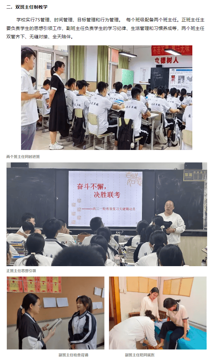 教师的业务能力、强烈的责任心和爱生如子的教育情怀,这是我校教师的精髓。还有一部分教师来自省会学校,能更精准的把握学情,是提高学生学习的基础。我校师资团队结构合理、精诚团结和极具战斗力,整体综合实力强大。