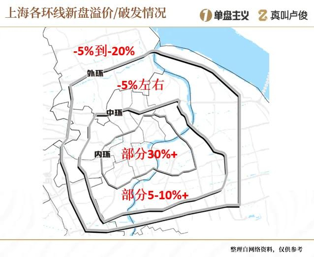 分环线来看,内环部分顶豪溢价率超过30%,中环部分改善盘也有5%-10%的溢价率