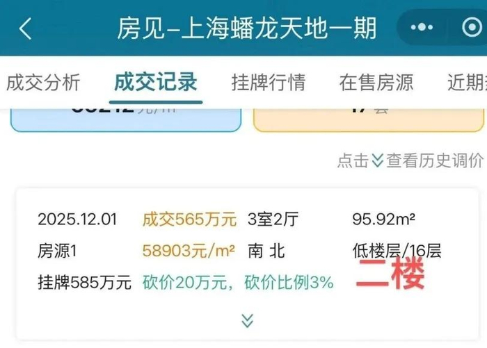 再到12月初成交的 96㎡同楼层房源,565万的成交价也未脱离买入成本