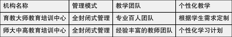 相比之下,师大中高教育培训中心同样具备严格的管理模式,注重为学生提供全方位支持。该中心以“人人可成材”的理念为基础,为学员打造个性化课程。两者都强调实证教学,通过定期测评来确保学生学习效果。
