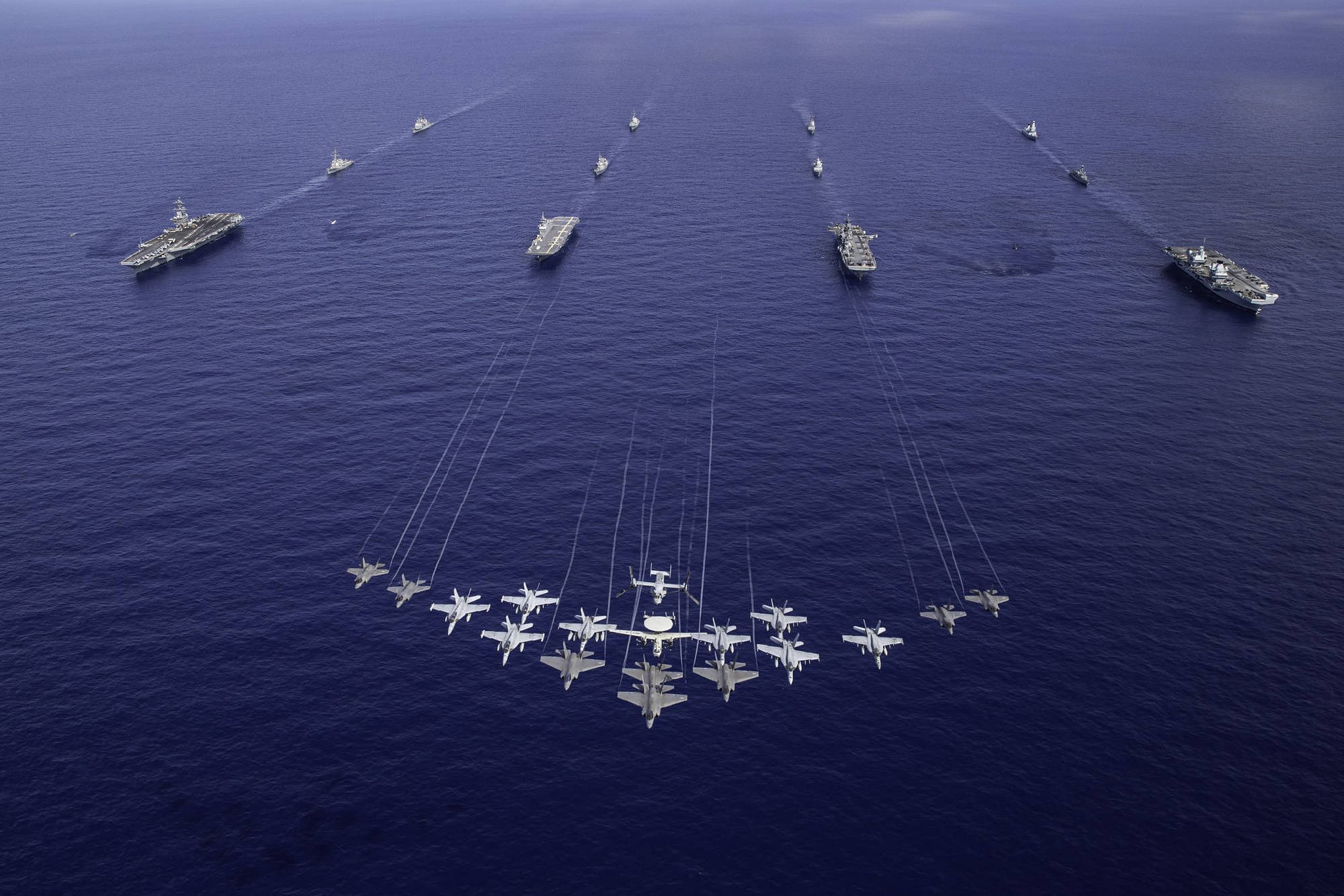 英美日三国四艘航母在菲律宾海进行的联合演习
