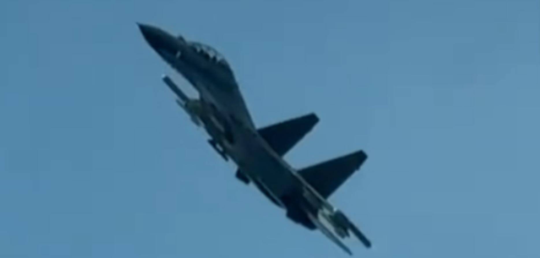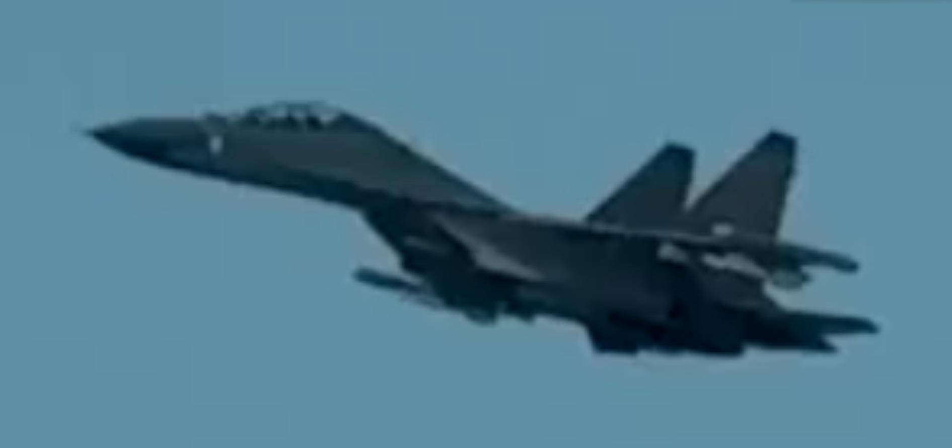 画面中,解放军苏-30战斗机挂载了格斗空空导弹