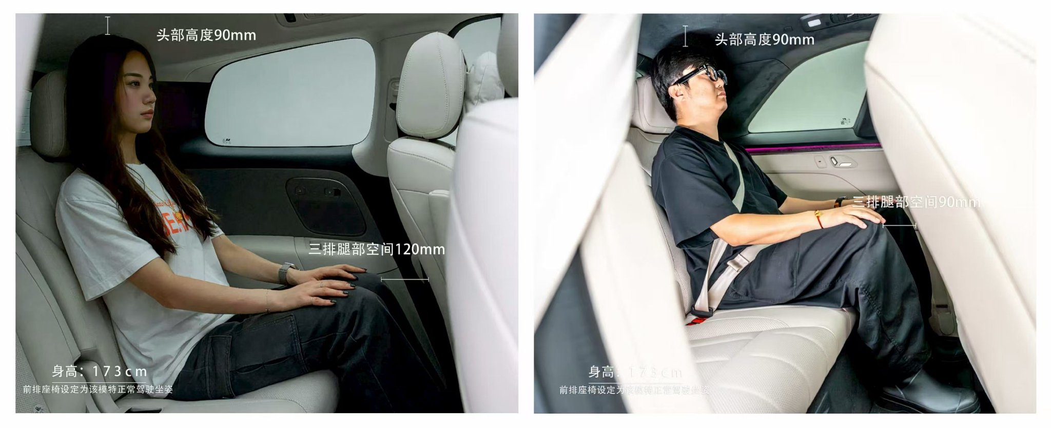 理想i8(左)和乐道L90(右)的第三排乘坐示意图 汽车之家在座舱方面,Model YL相比Model Y做了一些提升,但是和中国新势力车企相比,新车目前的表现仍然不完美。