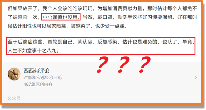 “如果认认真真地执行14+7隔离,做好常态化核酸检查,那么,每个人完全可以只戴着一个几毛钱的四面漏风的外科口罩到处晃。