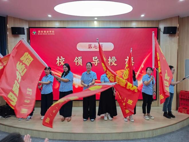 旗帜飘扬,使命在肩校领导为高三各班级授予“高三备考先锋队”旗帜。旗帜挥舞,使命相传,象征着高三全体师生将以最昂扬的斗志和最坚实的步伐,共同迎接明天的挑战。