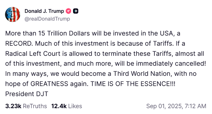 当美国联邦巡回上诉法院裁定总统的大部分关税政策违法后,特朗普上周五宣称,若法院不批准政府关税,“将对国家造成彻底灾难”。并“会彻底摧毁美国”。本周二他重申了这些声明,称“美国正在因为关税损失17万亿美元”。