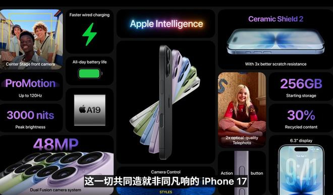 在全场屏息凝神的注目下,本场发布会的主角iPhone 17系列正式登场。