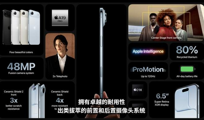 (图片来源:苹果官方)不过由于机身变轻变薄了,电池容量自然也迎来一波大缩水,虽然苹果没有透露具体的数据,但从视频播放时间比iPhone 17少3小时来看,这个电池容量可能不太乐观。