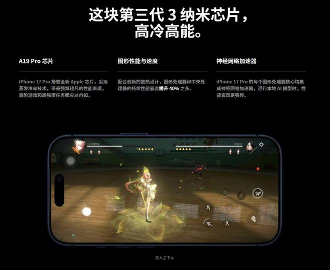 (图片来源:苹果官方)但受限于体积和重量,搭载A19 Pro芯片的iPhone Air性能并没有我们想象中那么强大,从苹果官方给出的数据来看,iPhone Air的性能只比搭载A17 Pro的iPhone 15 Pro强一点(CPU部分提升20%,GPU部分提升30%)。