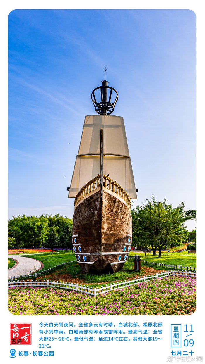 【天气】今天白天,全省晴转多云,白城西部有中雨,部分地方有大雨,白城东部、松原东北部有阵雨或雷阵雨,上述地区伴有短时强降水、雷暴大风或冰雹等强对流天气。长春市最低气温:14℃,最高气温:27℃。今天夜间到明天白天,全省多云有时晴,白城东北部、松原东北部、长春中部和北部、四平西部、吉林东北部有阵雨或雷阵雨,部分地方伴有短时强降水、雷暴大风或冰雹等强对流天气,白城西南部、松原西南部部分地方有阵雨或雷阵雨。