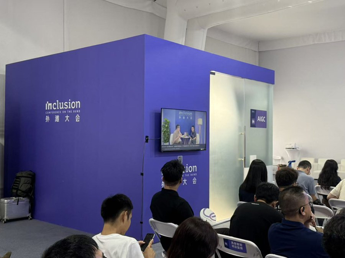 2025 Inclusion·外滩大会H馆无疑是最火爆的地方之一。走进馆内,你会看到4个巨大的“盒子”,“盒子”里摆着一张桌子、两把椅子,还有正对画面的摄像头。每个被选中的创业者有15分钟时间,推门走进“大盒子”,用产品或者理念打动投资者。而摄像头则会将直播画面滚动播放在大屏幕上,单刀直入的提问与直面痛点的交流,让路演弥漫着“现场答辩”的紧张气息。