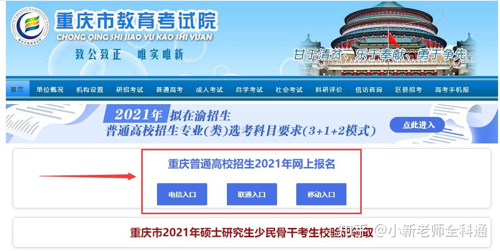 4、网上报名:考生本人凭考生号和网上报名密码登录“重庆教育考试院官网”或“重庆招考信息网”进行报名;报考时,考生须准确填报学业水平选择性考试科目,考试科目采用“3+1+2”模式(注意:复读生无需参加合格考)。