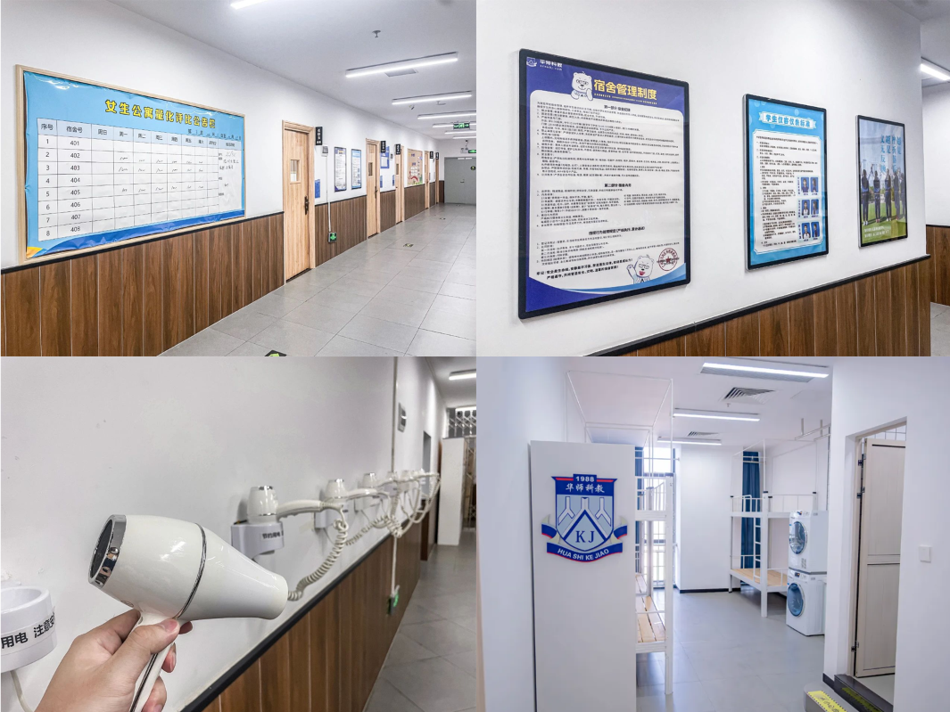 现场看到,宿舍门口张贴着 《宿舍管理制度》:统一熄灯时间、禁用电子产品、零食限牛奶水果...“严格的纪律是为最大化学习时间。”生活老师展示配备公用吹风机的安全用电角。