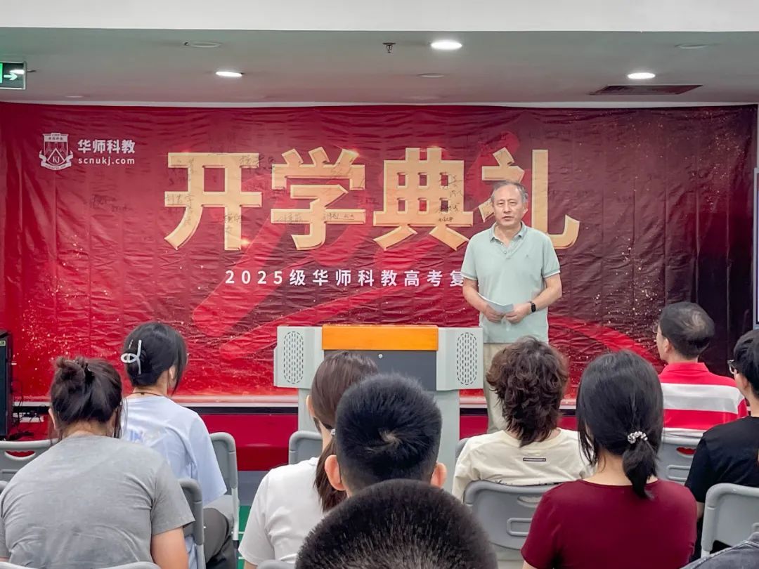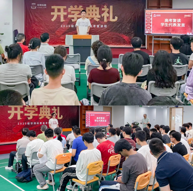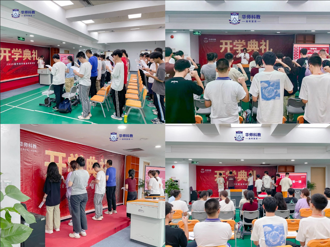 2025年8月10日,广州信源大厦4楼涌动着蓬勃朝气。数十名怀揣名校梦想的高考复读学子齐聚华师科教培训中心,正式开启为期一年的“梦想重塑计划”。他们在开学典礼上集体宣誓,以“破釜沉舟”之志吹响征战2026高考的号角。本次出席典礼的领导和嘉宾有:曾校长、李校长以及各科教师代表。
